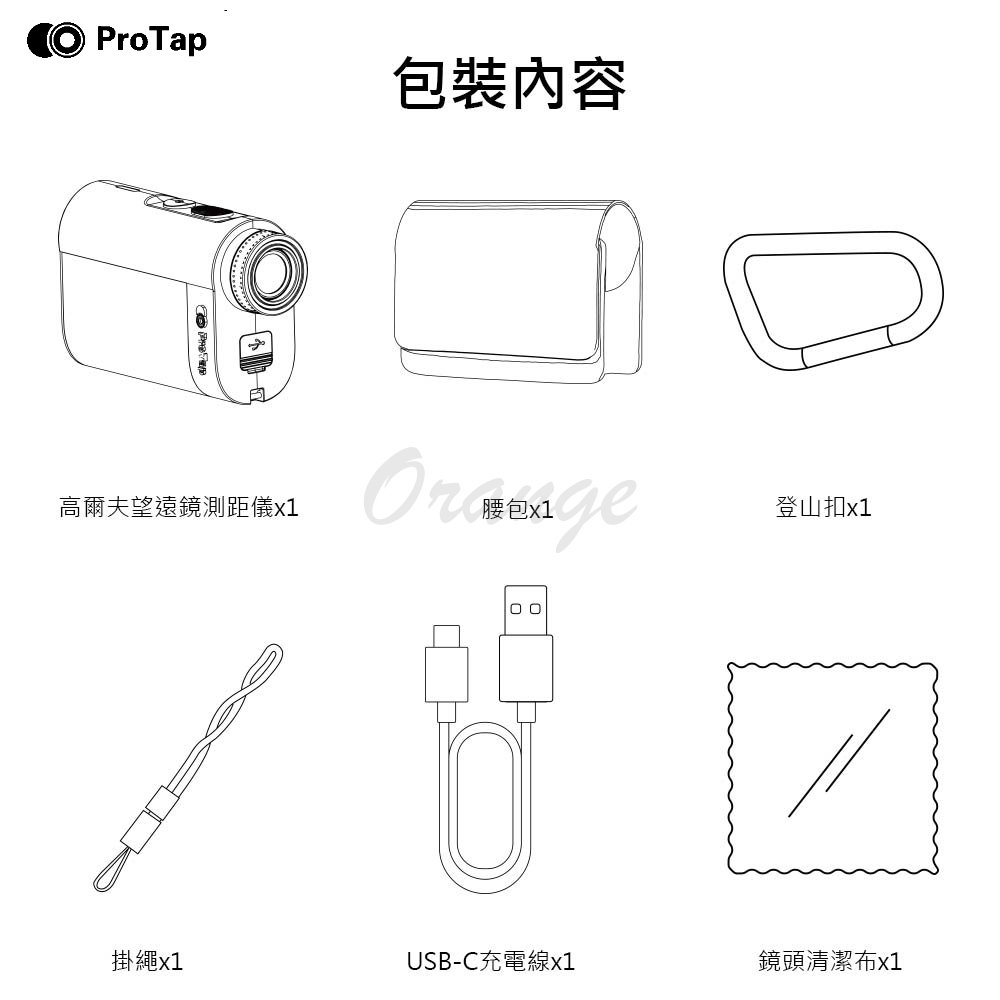 包裝內容:望遠鏡測距儀*1、收納包*1、Type-C充電線*1、鏡頭清潔布*1、登山扣*1、掛繩*1、說明書*1